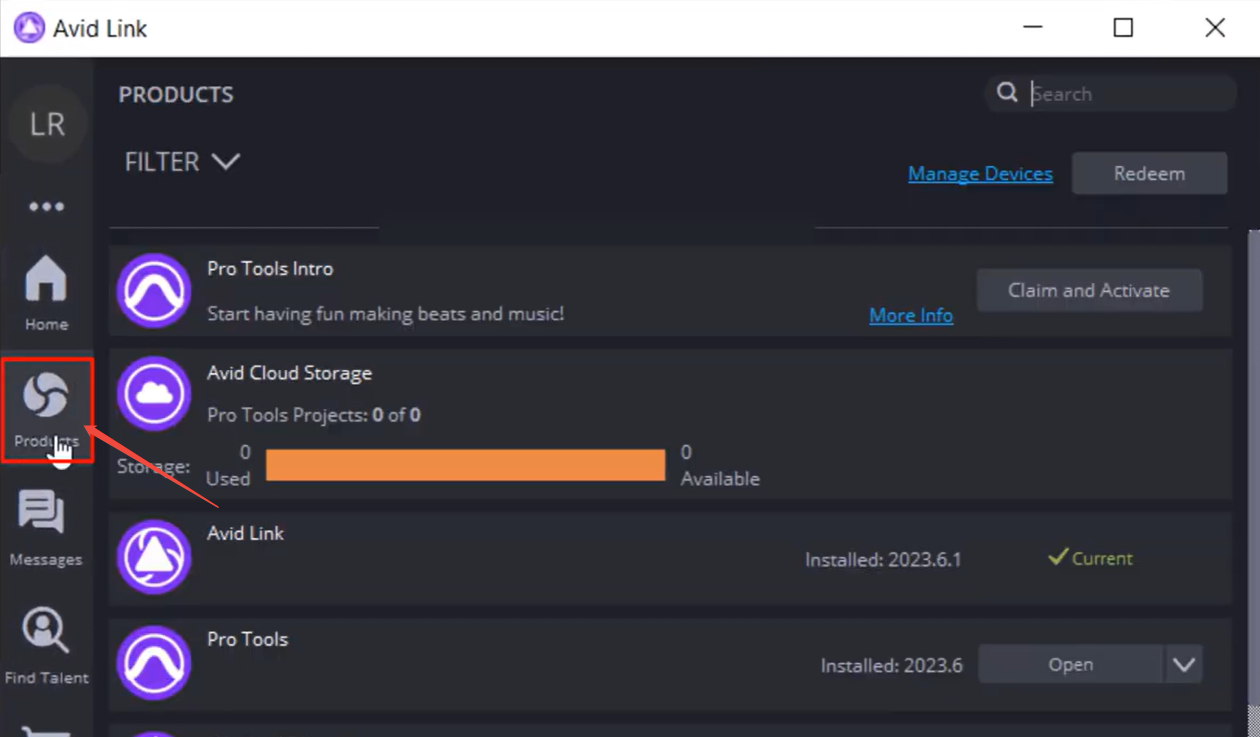 2. 转到“Products”选项卡。