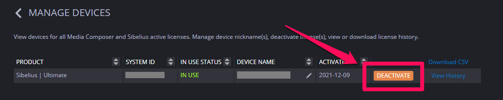 5. 单击要移除的许可证上的 “DEACTIVATE”按钮。